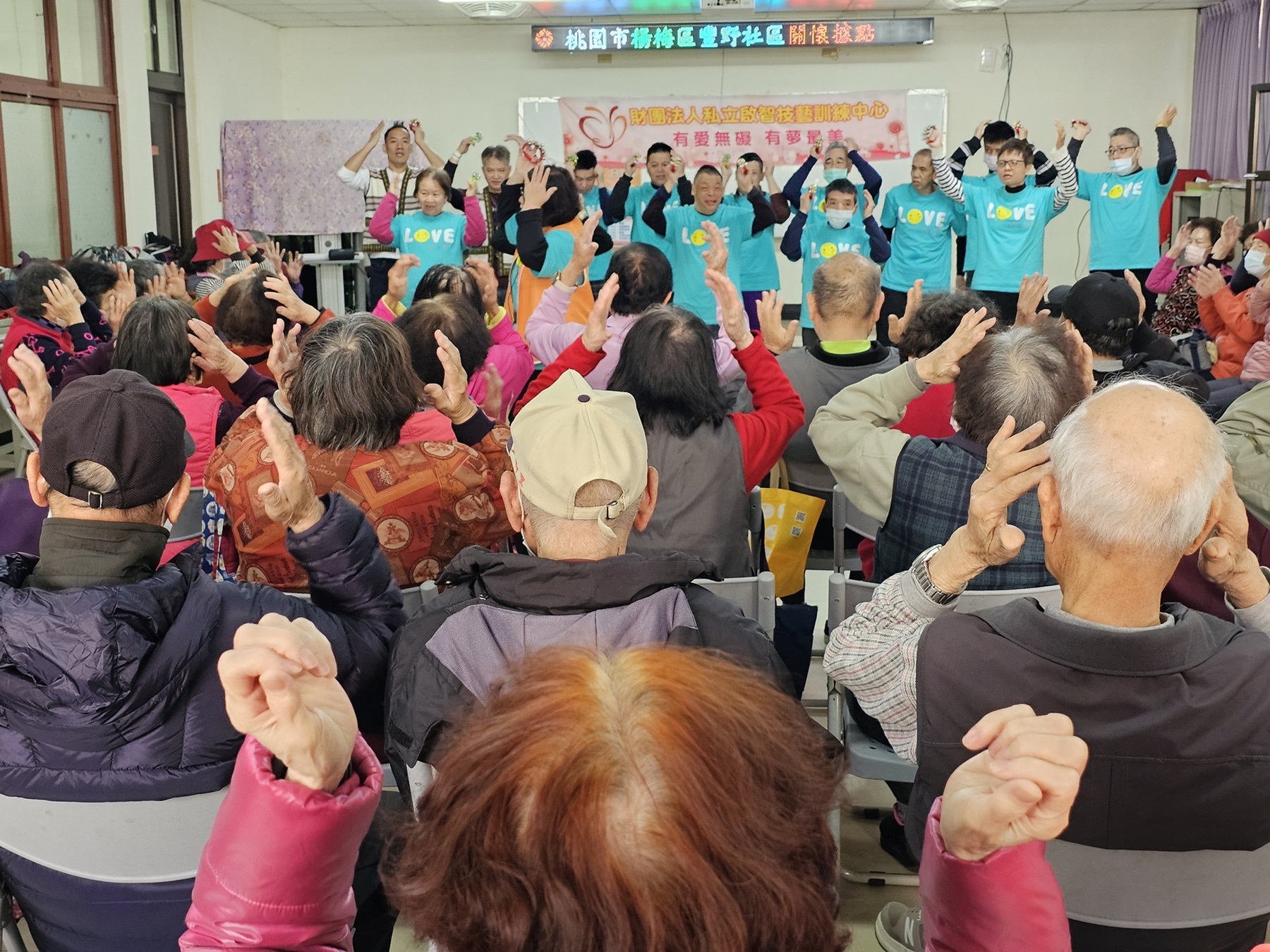 隨後由「恩典合唱團」及「加賀谷音樂照顧社團」接續登場,帶來溫暖動人的音樂分享。透過旋律優美的歌曲,結合簡單易學的手勢與律動,引導長輩一同參與音樂與肢體活動。在輕鬆愉快的節奏中,現場參與者一同歌唱、律動與交流,展現音樂促進互動與情感連結的力量。