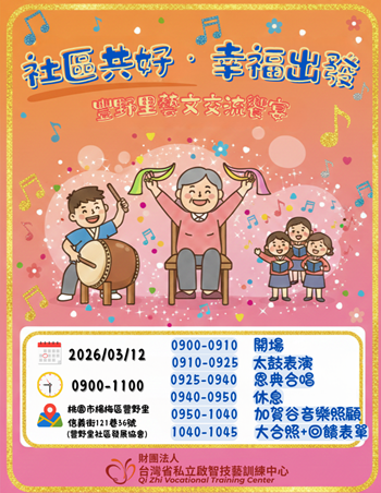 本次活動以「社區共好」為核心理念,陪伴啟智服務對象走進豐野社區,透過音樂、互動與交流,營造溫暖且充滿活力的參與氛圍,讓幸福自社區出發,並在人與人之間自然流動。